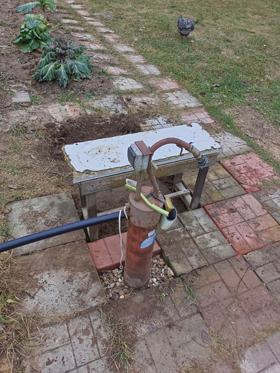 Так же навели порядок у водопровода. Убрали хрена корни, что проросли из бочки. Все сорняки, траву, убрали. Поправили плитку. Столик сюда же. Помыть ничего не получится, ибо на дворе мороз почти с один градус. Разведу лишь грязь и после лёд. Снегом покроет на днях, и всё будет в порядке 😊 Курочка наелась червячков. Пора ей к себе в домик.