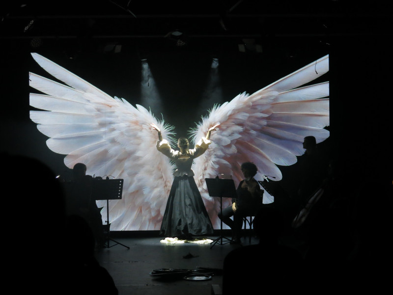 Воплощение на сцене получилось неожиданным, очень проникновенным и чувственным. Слова произносимые Лилией Гайсиной перемежались переливами барочной музыки и оперным пением. Поразил голос Анны Лихолат, особенно в первое появление, когда она проходила между рядов. Даже не сразу поняла откуда льется эта музыка, так это было прекрасно. Союз оркестра, с проникновенным, эмоциональным чтением и оперными вставками подарило невероятные ощущ