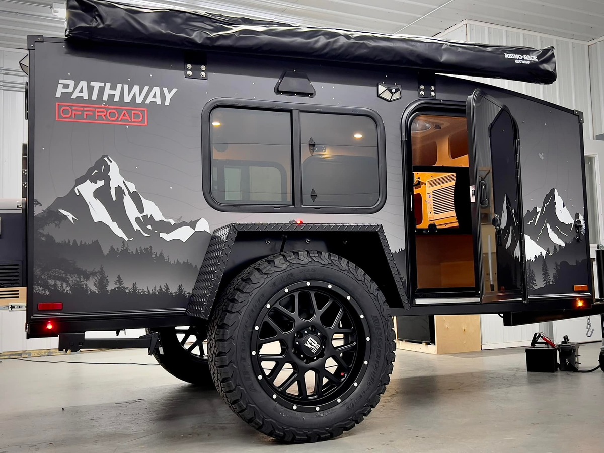 Pathway Campers — это небольшой семейный бизнес по производству кемперов. Он предлагает американцам простое и доступное решение, чтобы как можно скорее оказаться на природе. Pathway существует всего с 2020 года, но если учесть, что прошло уже пять лет, а команда всё ещё в отличной форме, значит, они делают все правильно. Владельцы говорят, что их кемперы раскупаются как горячие пирожки. Вся линейка бренда строится на трёх конфигурациях автодомов модели Squared-Drop. Это эволюция каплевидного кемпера с более угловатой, «квадратной» формой. Благодаря ей внутри становится просторнее, а установка оборудования на крышу — например, багажника или солнечных панелей — заметно проще. Стоит отметить, что компания использует один и тот же кузов для всех комплектаций, отличаясь только шасси, ходовой частью и некоторыми дополнительными функциями. Эти изменения в базовой комплектации влияют на вес, но незначительно. Самая большая и крутая модель в линейке — Off-Road. В основе Off-Road лежит неза