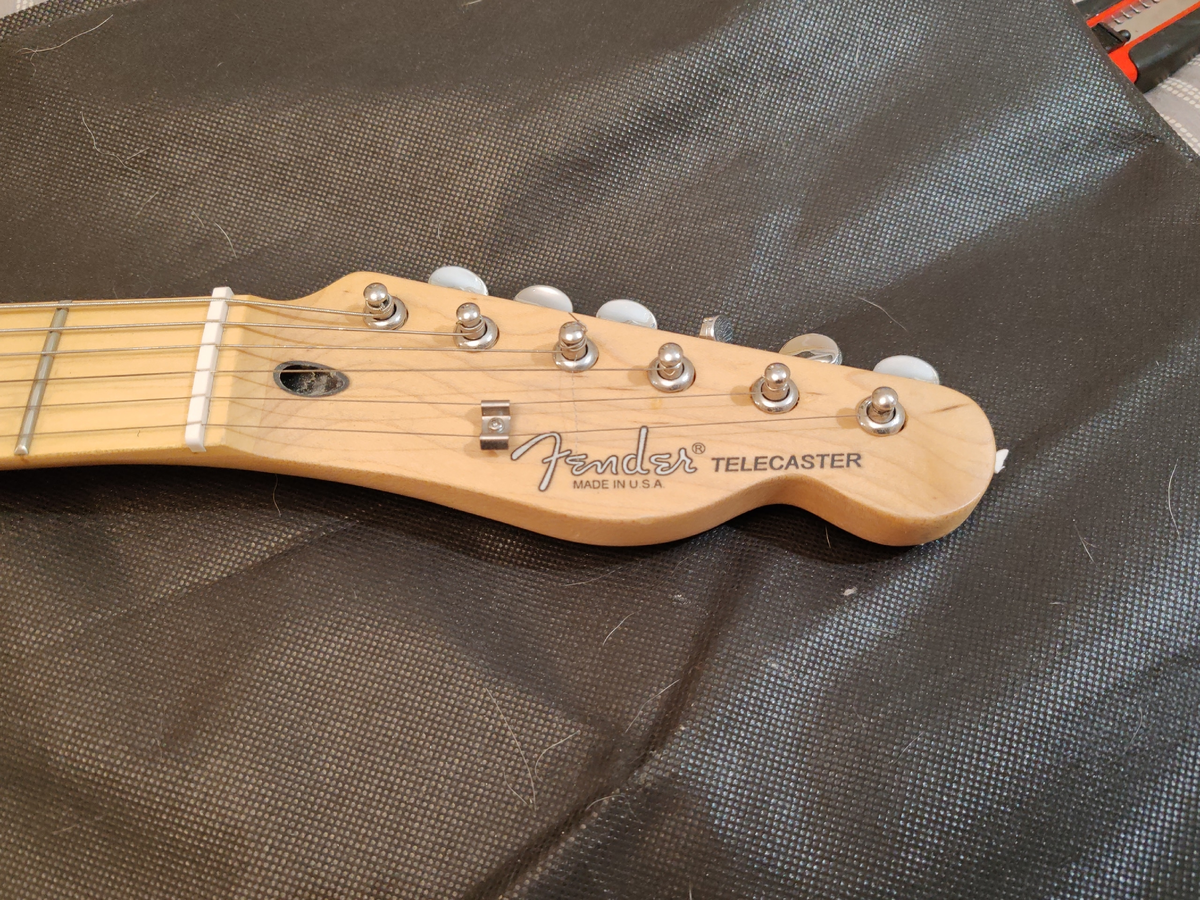 Сегодня у меня в работе китайская реплика Fender Telecaster. Всё в ней хорошо, но только не это: смотрим внимательно на то, как установлены колки. В грифе просверлены отверстия на 10 мм - это под колки с креплением на гаечку А установлены в эти отверстия колки с втулочкой, диаметр которой 8 мм Впрочем, это настолько частый прикол на китайских фендероидах, что я держу в наличии несколько комплектов переходных втулок на 10 мм. Уж больно часто приходится такую фигню лечить. А получается это от лени и непродуманности. Да, колки под гайку используются чаще, поэтому большинство грифов делают с отверстиями на 10 мм, а вот по факту колки потом ставят то ли какие клиент пожелает, то ли какие завезли, то ли какие под руку попались, и никто не побежит менять гриф только потому, что там, подумаешь, отверстия не того диаметра! Проще намотать малярный скотч. Казалось бы, можно было бы или научиться не косячить, или придумать более технологичное решение проблемы... Но Китай не зря славится вернос