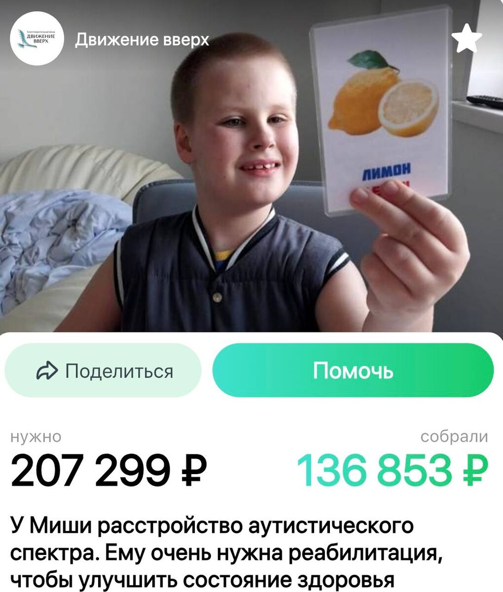Ваша помощь очень нужна подопечным детям нашего фонда «Движение вверх» - Мише Долганову, Артему Сасину и Коле Войтюку. Сбор средств осуществляется в приложении Tooba. В 2 года и 6 месяцев у Миши обнаружились первые диагнозы: минимальная мозговая дисфункция, задержка речевого и психического развития, дизартрия. А в 2020 году жизнь семьи изменилась навсегда – мальчика поставили на учет у психиатра и невролога, присвоив статус «ребенок-инвалид». В реабилитационном центре, в котором Миша уже проходил реабилитацию, специалисты борются за каждого ребенка, помогая раскрыть потенциал и навыки, научиться жить и адаптироваться в этом сложном мире. Давайте вместе поможем Мише пройти такой необходимый ему очередной курс реабилитации и улучшить его состояние здоровья! Помочь Мише можно по ссылке. Артем Сасин родился в срок, путем кесарева сечения. Казалось, самое страшное позади. Но у малыша не заживал пупок, потребовалась операция. А потом – долгие месяцы тревоги: наркоз дал осложнения, Артем на