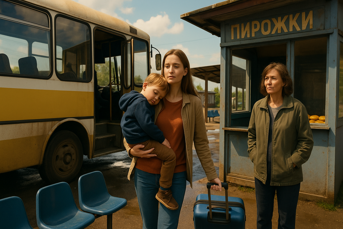 Автобус подпрыгивал на ямах, за окном тянулись знакомые поля, облезлые остановки, старый щит с наполовину стёртой надписью «Добро пожаловать». На коленях у Ани спал Сашка – четыре года, нос уткнулся ей в куртку, ресницы дрожат.