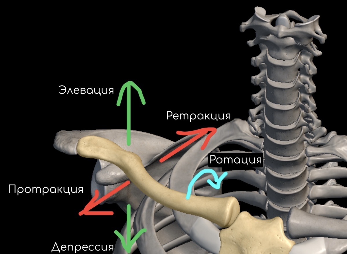 Для практиков йоги и преподавателей: чтобы осознанно работать с асанами на раскрытие и укрепление плеч, необходимо видеть не один шарнир, а целую систему. Свобода руки — это результат сложения амплитуд четырёх сочленений. Вот подробная карта их движений. I. Грудинно-ключичный сустав Единственная костная связь руки с осевым скелетом. Движения: 1. Элевация / Депрессия (подъём / опускание ключицы). · Сопровождает подъём и опускание плечевого пояса. 2. Протракция / Ретракция (движение ключицы вперёд / назад). · сопровождается разведением и сведением лопаток. 3. Осевая ротация ключицы. · Происходит в конечной фазе подъёма руки, обеспечивая полную амплитуду.