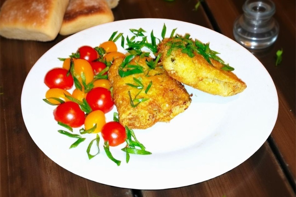 - Пшеничная мука (для панировки): около 50-70 граммов;