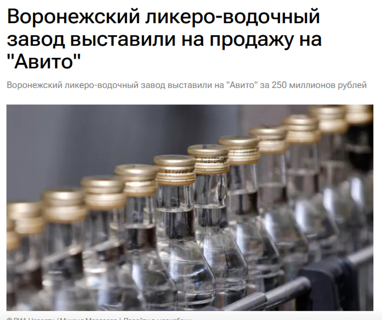 В Воронеже продают целый ликеро-водочный завод. И да, на «Авито»