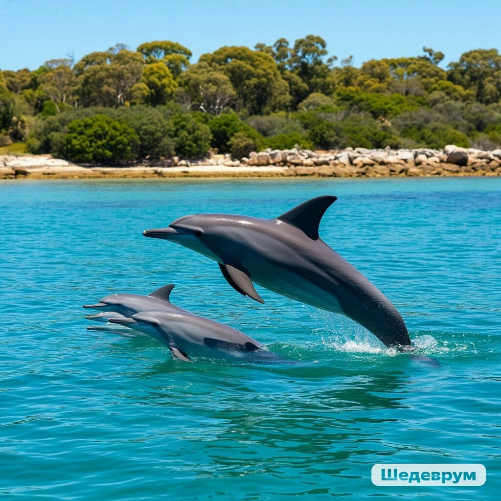 Первым делом Есения и Оскар решили отправиться к заливу Кумбана - сердцу Банбери. Они оказались не просто на пляже, а в уникальном природном резервуаре, известном своими дружелюбными дельфинами, которые часто подходили к берегу. Есения и Оскар стояли на белом песке, наблюдая за бирюзовыми водами, где вдалеке мелькали темные силуэты, держа друг другу за руки.