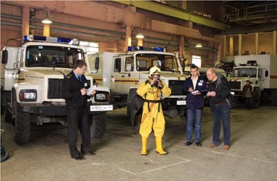Далее спасателям предстояло надеть химзащитный костюм, который предназначен для работы с агрессивными средами и химически опасными веществами: хлором, аммиаком, кислотами и так далее. Есть у нас на вооружении и уникальные жароотражающие костюмы, в которых не страшны высокие температуры. На других предприятиях ничего подобного нет и в помине.