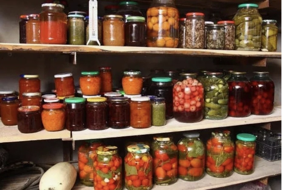 Первый культурный шок произошёл, когда мы спустились в подвал моего дома, где стоят стеллажи с заготовками — банки с огурцами, помидорами, вареньем, компотами, грибами, кабачковой икрой, аджикой.