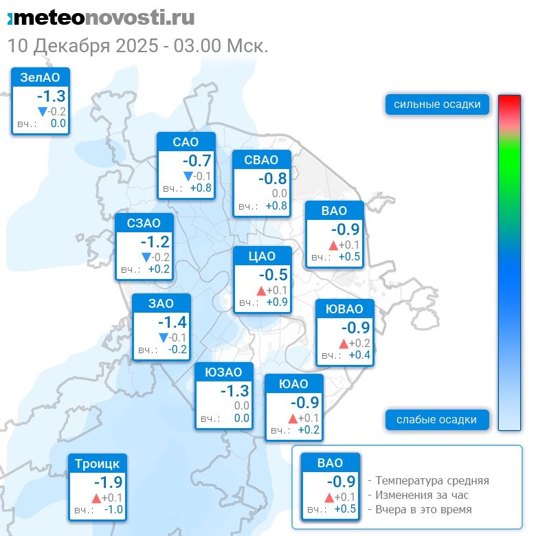 В 3:00 в Москве было от -2.2°C до 0°C, средняя температура -1°C #погода #Москва #зима #температура #10декабря #среда