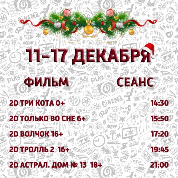 РЕПЕРТУАР НА 11 — 17 ДЕКАБРЯ На фильмы: «Гарри Поттер и Орден Феникса», «Только во сне», «Тролль 2» брони и онлайн продажи нет, билет без указания места. https://premierzal.ru/theatre/yashma/schedule Телефон для бронирования: 8 965 941 58 49 Бронь автоматически снимается за 20 минут до начала сеанса Касса кинотеатра открывается за 20 минут до начала первого сеанса и закрывается через 20 минут после начала последнего сеанса vk896500880 December 9, 2025, 16:12 Здравствуйте, когда будет фнаф 2 vk718369515 December 9, 2025, 16:16 [id896500880|Ролан], говорили, что после новогодних каникул. vk592223274 December 9, 2025, 18:25 Но могут и раньше показать Источник https://uchaly102.ru/?p=115225