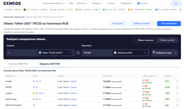 Первый шаг — анализ рынка. Не заходите сразу на первый попавшийся сайт обменников криптовалюты. Воспользуйтесь независимым агрегатором, например, Exnode. На таких площадках можно: