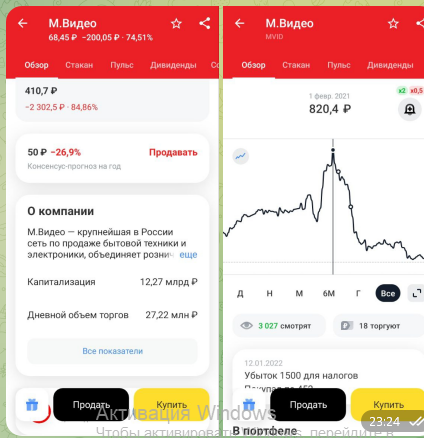 Помню эту сеть еще в 90-х. Огромное количество магазинов, которые начинались с небольших точек. Кстати. кто помнит, тогда количество продавцов бытовой техники было очень большим но на рынке никого не осталось кроме М Видео и Эльдорадо. Даже немецкий МедиаМаркт М Видео удачно выкупили открыв на этих местах свои точки Но потом стало все меняться потому что ритейл ушел с торговых площадей в онлайн. М видео, кстати, старались и стараются что-то сделать, но мне кажется, что не в ту сторону и не так. Посмотрите прогноз аналитиков: ПРОДАВАТЬ Акция улетела в пропасть с 820 до 60 рублей. Хуже, по моему, только ВТБ со своими акциями сработали. Но в этом же приложении Т Инвестиции Умеют справляться с кризисами...Не ясно пока как , н умеют. С Мать и Дитя все понятно - это вечная востребованность. С Магнитом тоже в целом все понятно. Если раньше на вопрос где купить технику ответ был - М ВИДЕО, то сейчас все идут на маркетплейсы и в онлайн магазины. М Видео тоже онлайн магазин и даже маркетплейс