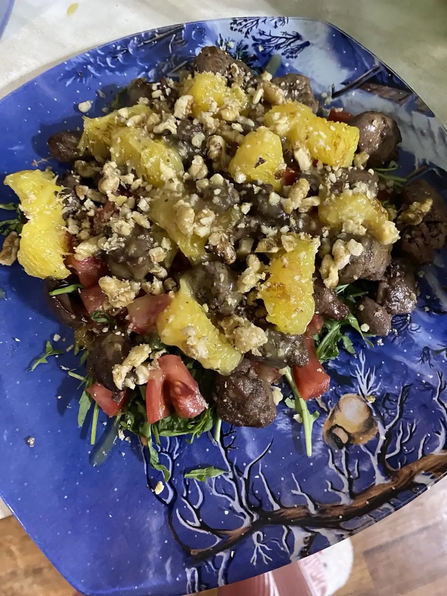 Согласитесь, бывают блюда универсальные, классика жанра, что называется) Привычные сочетания, стандартная подача, обычные компоненты))) А встречаются и такие, что сложно представить себе вкус конечного продукта по списку ингредиентов))) И сегодня именно такой рецепт... Привет всем вам, дорогие мои, самые преданные читатели! Спасибо вам, что вы всё ещё с нами) Заходите, читаете и даже оставляете свои комментарии))) Я все ваши отклики стараюсь читать, хоть и не успеваю делать это ежедневно) И отвечать тоже почти не успеваю, уж не говоря о том, чтобы пробежаться по вашим каналам с ответным визитом))) Ну вот совсем никак у меня сейчас не получается выкроить время на активность в Дзене) Задач стало в разы больше, а в сутках времени осталось так же 24 часа... Итак, чем же сегодня я решила вас удивить? Как ни странно, удивлять буду удивительным салатом с абсолютно удивительным сочетанием его составляющих( Этот салатик отыскала Лизавета на просторах интернета и решили мы его повторить) О