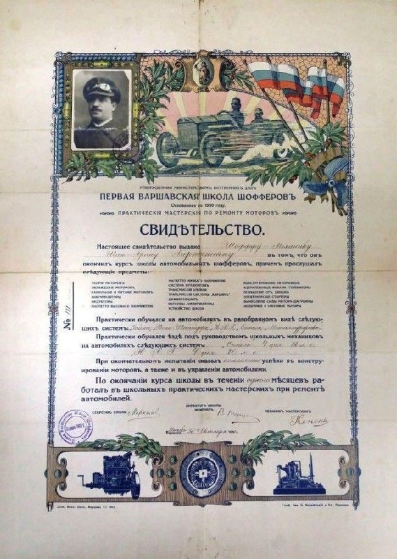 Так выглядело настоящее водительское удостоверение 1910 г. По формату сразу видно - занятие элитарное, а поэтому очень дорогое. Этакий вид аристократического хобби.