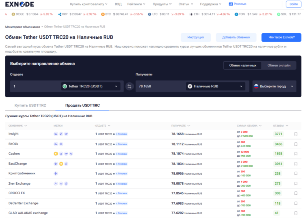 Заметно выросла и роль сервисов мониторинга, таких как Exnode. Они помогают заранее убедиться, что офлайн-обменник действительно существует, что офис реальный, курс честный, а отзывы — живые. Он отслеживает репутацию площадок, историю их работы и актуальные условия обмена, позволяя пользователю выбрать надёжный сервис ещё до визита. В реальности это полноценная часть безопасности сделки — то, без чего сегодня нельзя подходить к наличному обмену криптовалюты.