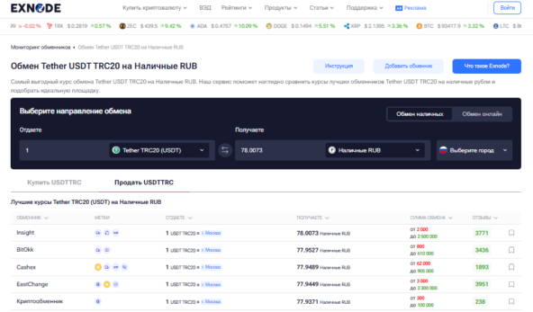 Обмен криптовалюты наличными становится всё более востребованным способом быстро получить реальные деньги. При таких сделках особенно важно соблюдать безопасность и выбирать надежные сервисы. Использование мониторинга обменников, например Exnode, позволяет проверить актуальные курсы, репутацию и надежность офлайн криптообменников.