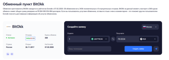 BitOkk: Ключевое преимущество — самая широкая сеть филиалов по стране и гибкие условия для крупных сумм. Практически в каждом крупном торговом центре можно найти их пункт. Многие отделения также поддерживают круглосуточный режим через систему персональных встреч или терминалы. Это идеальный выбор для тех, кто ищет доступность и географическое покрытие в рамках услуги офлайн обмена криптовалюты в России.