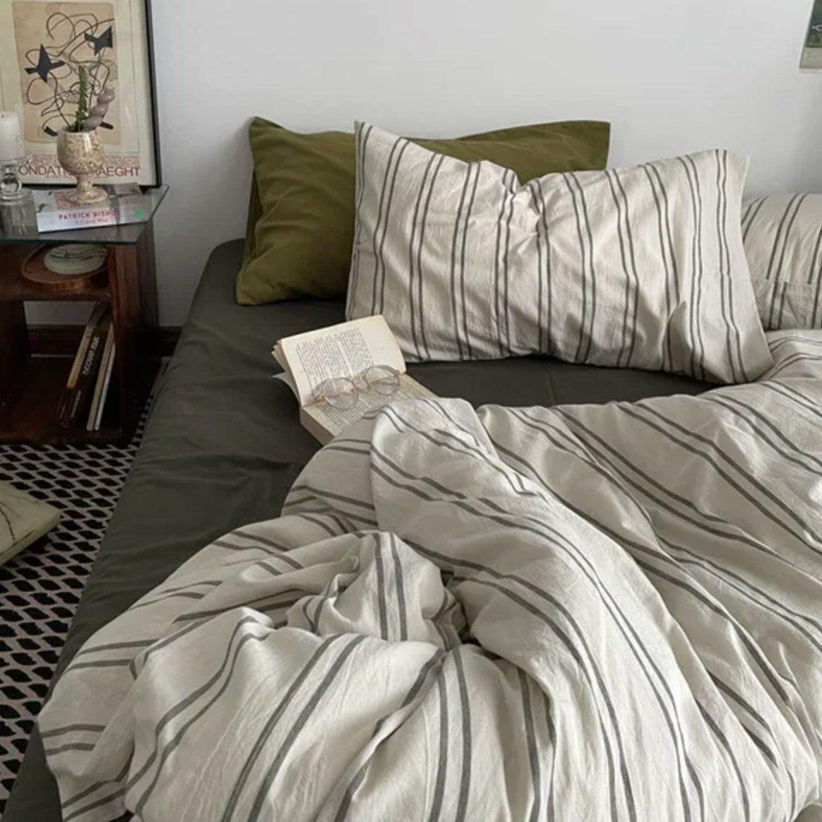- постельное белье с зеленой полоской