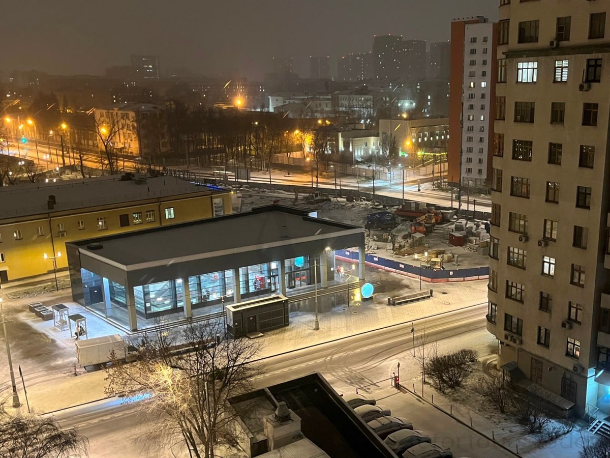 Станция метро "Лефортово" на фоне лёгкого, практически первого за сезон снега.