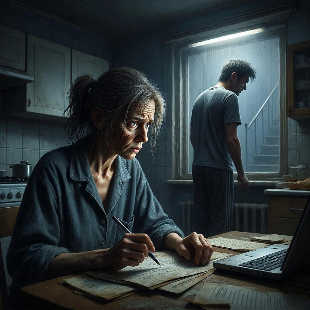 «Муж поставил на тумбочку конверт с деньгами и сказал: “Это плата за десять лет. Уходи, пока я не передумал”». Фраза застряла в мозгу, вращаясь с оглушительным треском. Десять лет. Десять лет жизни, сведённые к «работе». К «плате». Они встретились, когда ей было двадцать пять, а ему тридцать. Она — начинающий дизайнер, он — инженер на заводе. Снимали квартиру-малосемейку, ели доширак с сосисками, мечтали о своём гнёздышке. Потом была её беременность, выкидыш на пятом месяце, чёрная полоса депрессии, из которой он её вытаскивал, молча держа за руку ночами. Потом его карьерный взлёт, переход в солидную фирму, эта самая квартира, купленная в ипотеку. Её несостоявшаяся карьера — куда уж тут, когда надо было поддерживать его, создавать уют, быть надёжным тылом. Общие друзья, которые разошлись. Её мама, которую они вместе похоронили два года назад. Всё это — работа? Всё это — услуга?