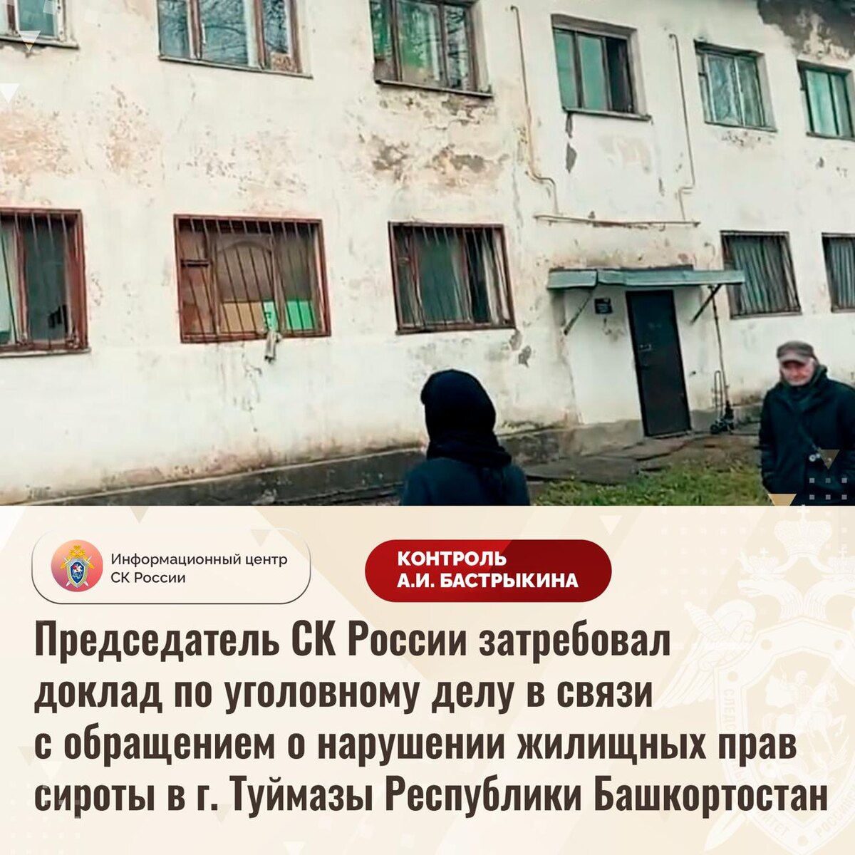 Председатель СК России затребовал доклад по уголовному делу в связи с обращением о нарушении жилищных прав сироты в г. Туймазы