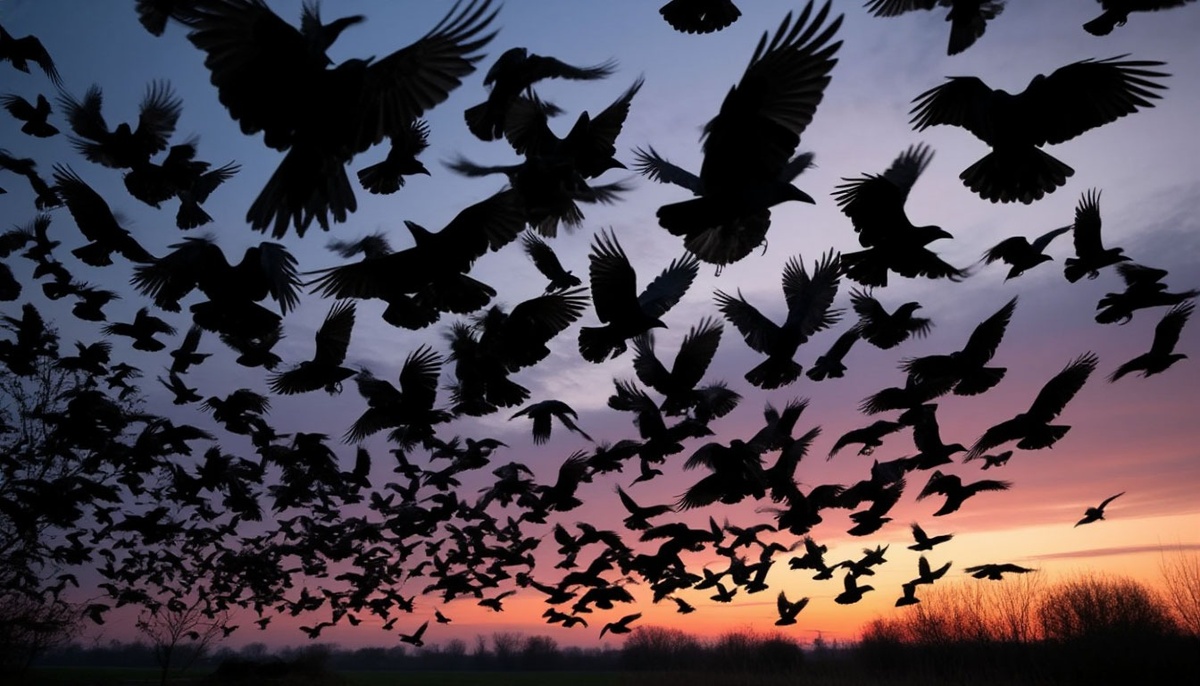 Я тоже посмотрела за окно. В сгущающихся вечерних сумерках на фоне быстро темнеющего неба отчётливо выделялись тёмные верхушки деревьев, над которыми кружила стая птиц. Большая стая. Я таких не видела никогда. В фильмах только. Как туча чёрная.
