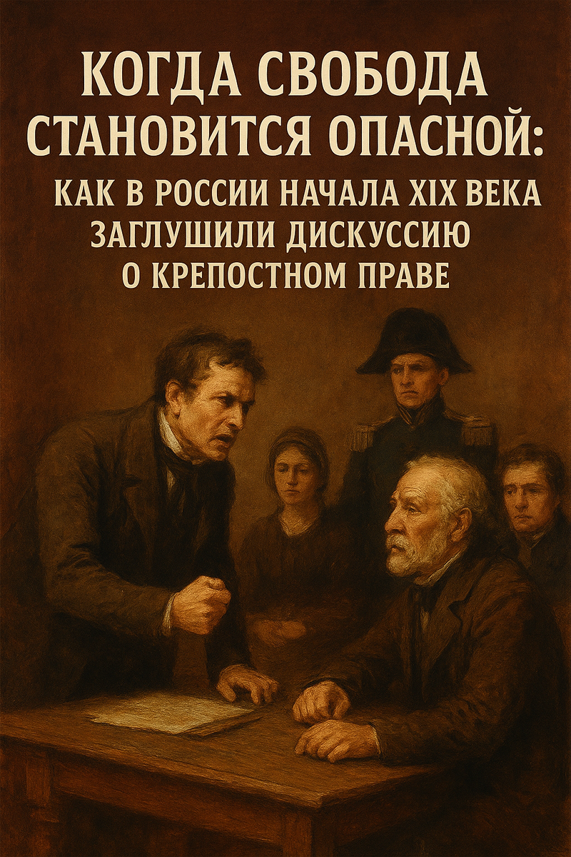Опыт 1810–1820-х годов показывает, как постепенно сужалась область дозволенного. Свободная дискуссия о крепостном праве, начавшаяся в начале царствования Александра I, завершилась жёстким запретом и уходом общественной мысли в подполье.