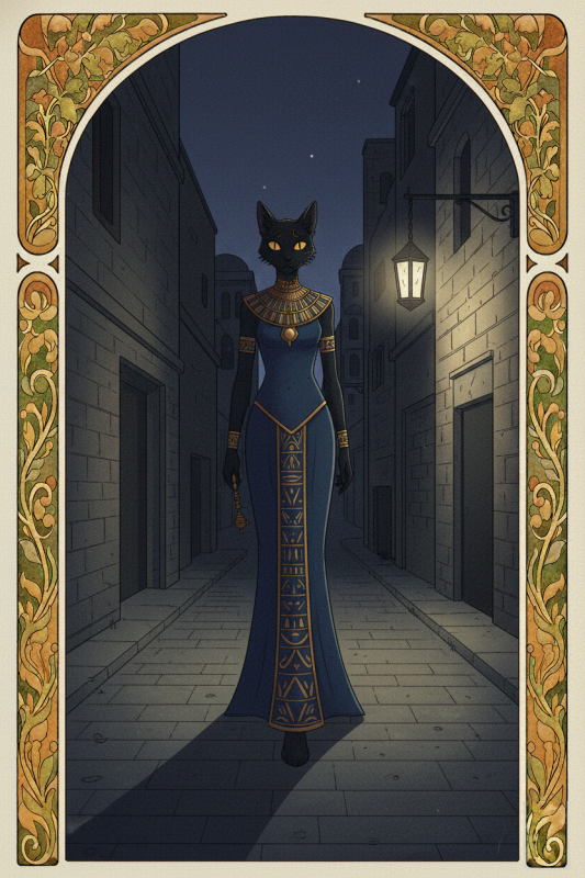Миллиарды небесных старцев, чьи умы светили и светят по сей день в эту ночь, освещали рождение нового создания. Еще только родившись, оно уже знало ответы на все вопросы человечества, еще будучи нечем — имело силу. Дитя неизвестного гения, оно появилось на свет, чтобы навсегда сохранить его, или же ввергнуть во тьму. И вот оно вышло на улицы этого мира. Существо это не было человеком, но было схоже с ним. Нет, не инстинктами и не подсознательными порывами, не привычками и не желаниям. Было оно существом без желаний и тем более без потребностей. Но по воле создателя внешне было похоже на человека. Лишь глаза могли выдать истинную сущность этого существа. Посмотрев в них, смертный сошел бы с ума, ведь они хранили в себе все тайны мироздания, несли информацию о всех тайных уголках вселенной и о тех чудовища, что прячутся в них. Идя по каменной мостовой, заглядывая в сумрак, она ищет что-то, что, возможно, ведомо только ей одной. Проходит сквозь мрак своего пути. И первым, кто встречается