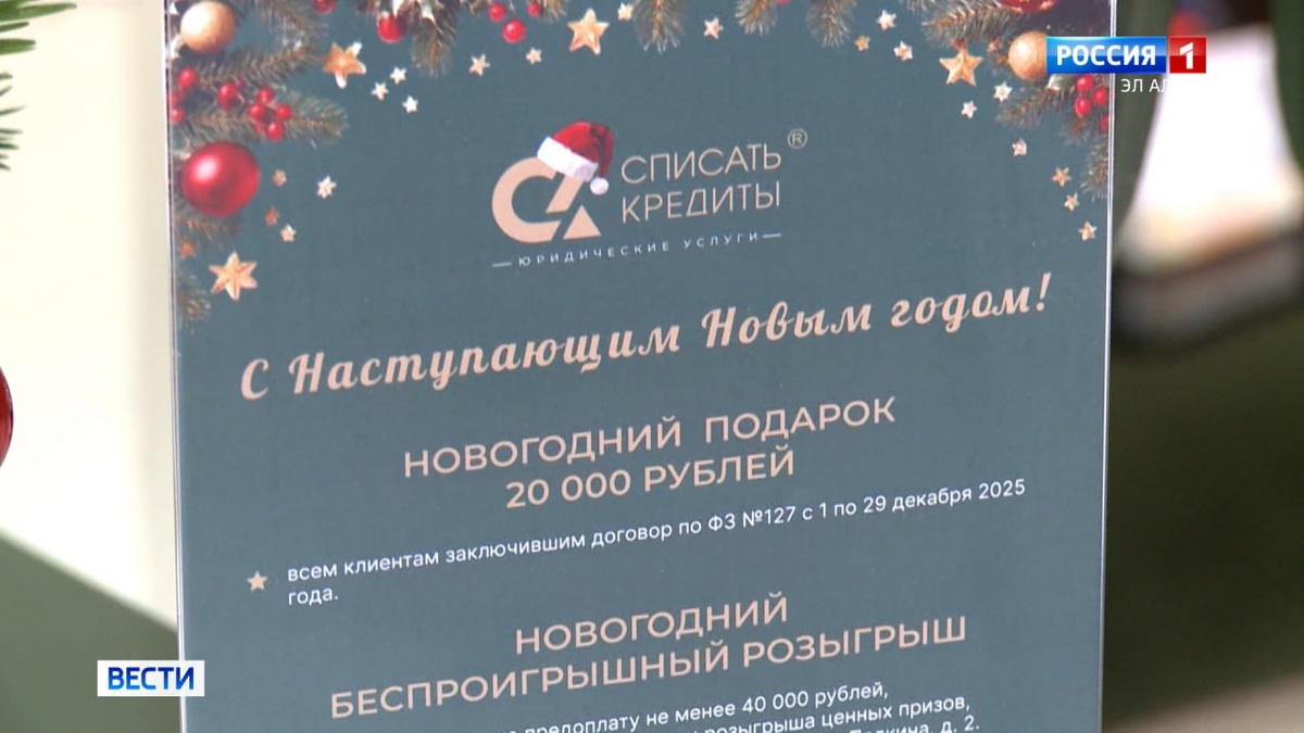 Беспроигрышный розыгрыш и скидки от «Списать Кредиты» Компания «Списать Кредиты» запускает новогоднюю акцию: бесплатная первая консультация, скидка 20 000 ₽ и гарантированные призы в розыгрыше! Главное — шанс начать 2026-й без долгов по 127-ФЗ, который позволяет раз в 5 лет списать все задолженности. Успей оформить договор и встретить Новый год с чистым финансовым листом! 👍Смотрите репортаж: «Вести Эл Алтай» МАКС