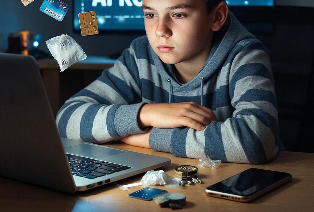 Родителей должно насторожить обнаружение у ребёнка чужих банковских карт, множества SIM-карт или специфических предметов вроде маленьких зип-пакетов, изоленты или магнитов. Наличие новых дорогостоящих вещей или гаджетов без ясного источника дохода тоже вызывает беспокойство.
