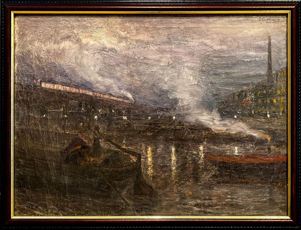 "БЕРЛИН ВЕЧЕРОМ. НАД ШПРЕЕ", ЛЕЙБА АБРАМОВИЧ АЛЬПЕРОВИЧ ---------------------- 🌆 "Футуристический вечер", Валерий Брюсов Монетой, плохо отчеканенной, Луна над трубами повешена, Где в высоте, чуть нарумяненной, С помадой алой сажа смешана. Стоят рядами вертикальными Домов неровные зазубрины, По стенам — бляхами сусальными, По окнам — золотом разубраны. Вдоль улиц червяки трамвайные Ползут, как узкими ущельями, И фонари, на нити тайные Надеты, виснут ожерельями. Кругом, как в комнатах безвыходных, Опризрачены, люди мечутся, В сознаньи царственном, что их одних Ночные сны увековечатся. И крик, и звон, и многократные Раскаты, в грохоте и топоте, И тонут, празднично-закатные, Лучи в нерастворимой копоти… 22.04.1917 👀 рассмотреть детали картины #ЛЕЙБА_АБРАМОВИЧ_АЛЬПЕРОВИЧ #LIEJBA_ALPIAROVICH