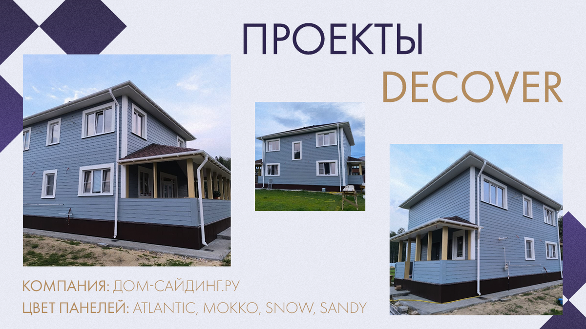 Решиться на обновление фасада или найти нужный материал для отделки — сложная задача. Лучше всего помогают не фотографии со складов или производства, а готовые проекты. Так сразу видно, как выглядит материал в жизни и как проходили работы. В статье посмотрим на три удачных решения использования панелей фибросайдинга. Проект компании «Дом-Сайдинга.ру» — двухэтажный коттедж с террасой.