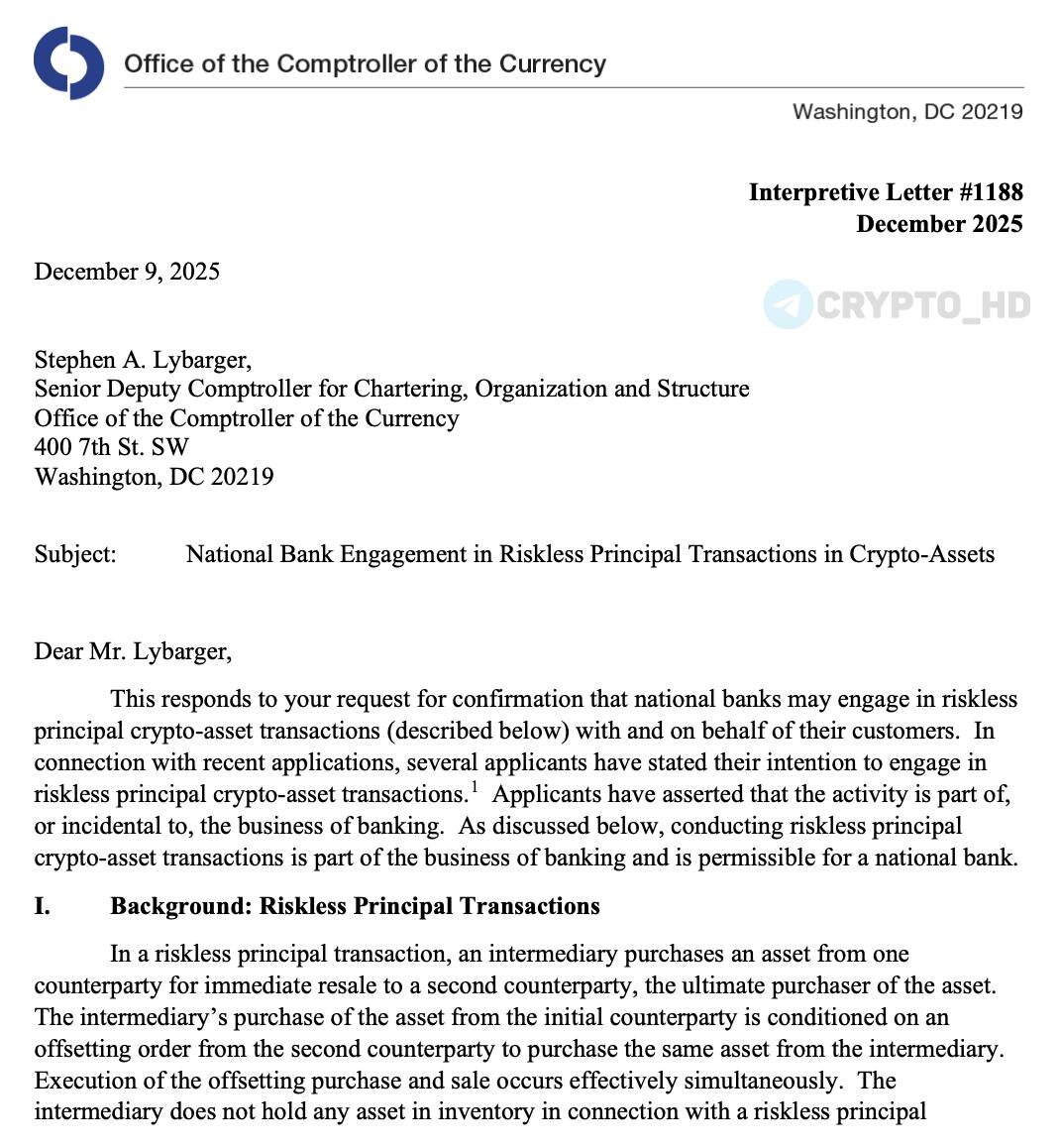 πΊπΈ Π Π‘Π¨Π ΠΎΡΠΊΡΡΠ»ΠΈ Π±Π°Π½ΠΊΠ°ΠΌ Π΄ΠΎΡΡΡΠΏ ΠΊ ΠΊΡΠΈΠΏΡΠΎ-ΡΠ΄Π΅Π»ΠΊΠ°ΠΌ. ΠΠ°Π½ΠΊΠΎΠ²ΡΠΊΠΈΠΉ ΡΠ΅Π³ΡΠ»ΡΡΠΎΡ OCC Π²ΠΏΠ΅ΡΠ²ΡΠ΅ ΠΎΡΠΈΡΠΈΠ°Π»ΡΠ½ΠΎ ΡΠ°Π·ΡΠ΅ΡΠΈΠ» Π½Π°ΡΠΈΠΎΠ½Π°Π»ΡΠ½ΡΠΌ Π±Π°Π½ΠΊΠ°ΠΌ ΠΏΡΠΎΠ²ΠΎΠ΄ΠΈΡΡ ΠΊΡΠΈΠΏΡΠΎΠ²Π°Π»ΡΡΠ½ΡΠ΅ ΠΎΠΏΠ΅ΡΠ°ΡΠΈΠΈ Π΄Π»Ρ ΠΊΠ»ΠΈΠ΅Π½ΡΠΎΠ². ΠΠ°Π½ΠΊΠΈ ΡΠΌΠΎΠ³ΡΡ ΡΠ°Π±ΠΎΡΠ°ΡΡ ΠΏΠΎ ΠΌΠΎΠ΄Π΅Π»ΠΈ Β«Π±Π΅Π·ΡΠΈΡΠΊΠΎΠ²ΠΎΠ³ΠΎ ΠΏΡΠΈΠ½ΡΠΈΠΏΠ°Π»Π°Β» β Π²ΡΡΡΡΠΏΠ°ΡΡ ΠΏΠΎΡΡΠ΅Π΄Π½ΠΈΠΊΠ°ΠΌΠΈ Π² ΡΠ΄Π΅Π»ΠΊΠ°Ρ