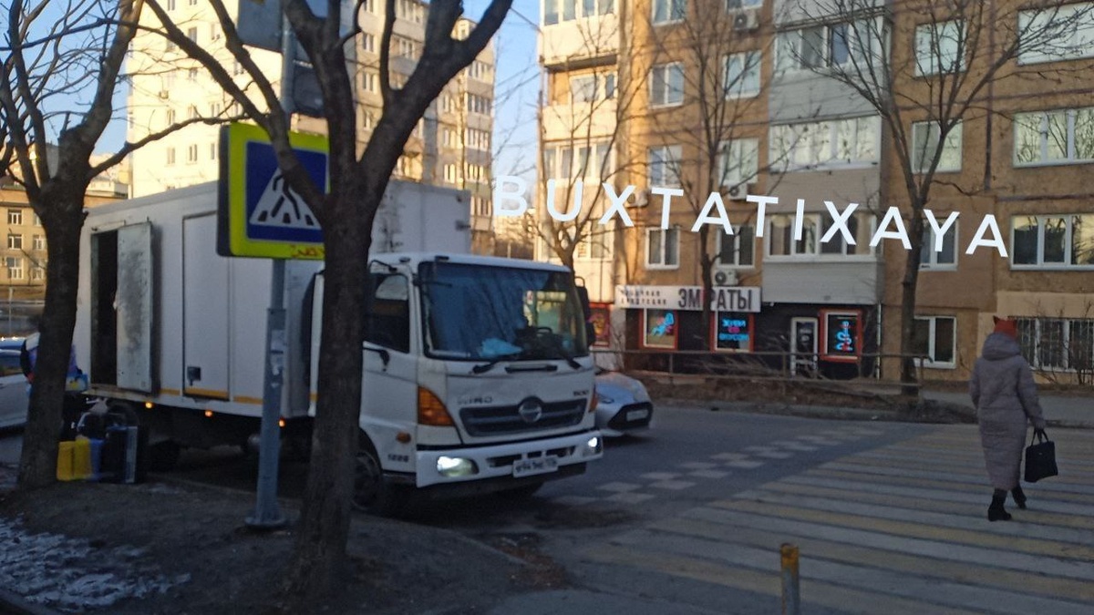 ❗️Нарушители ПДД, грузовик для разгрузки встал у пешедного перехода Сахалинская 33➡️42, чем перегородил обзор для других участников