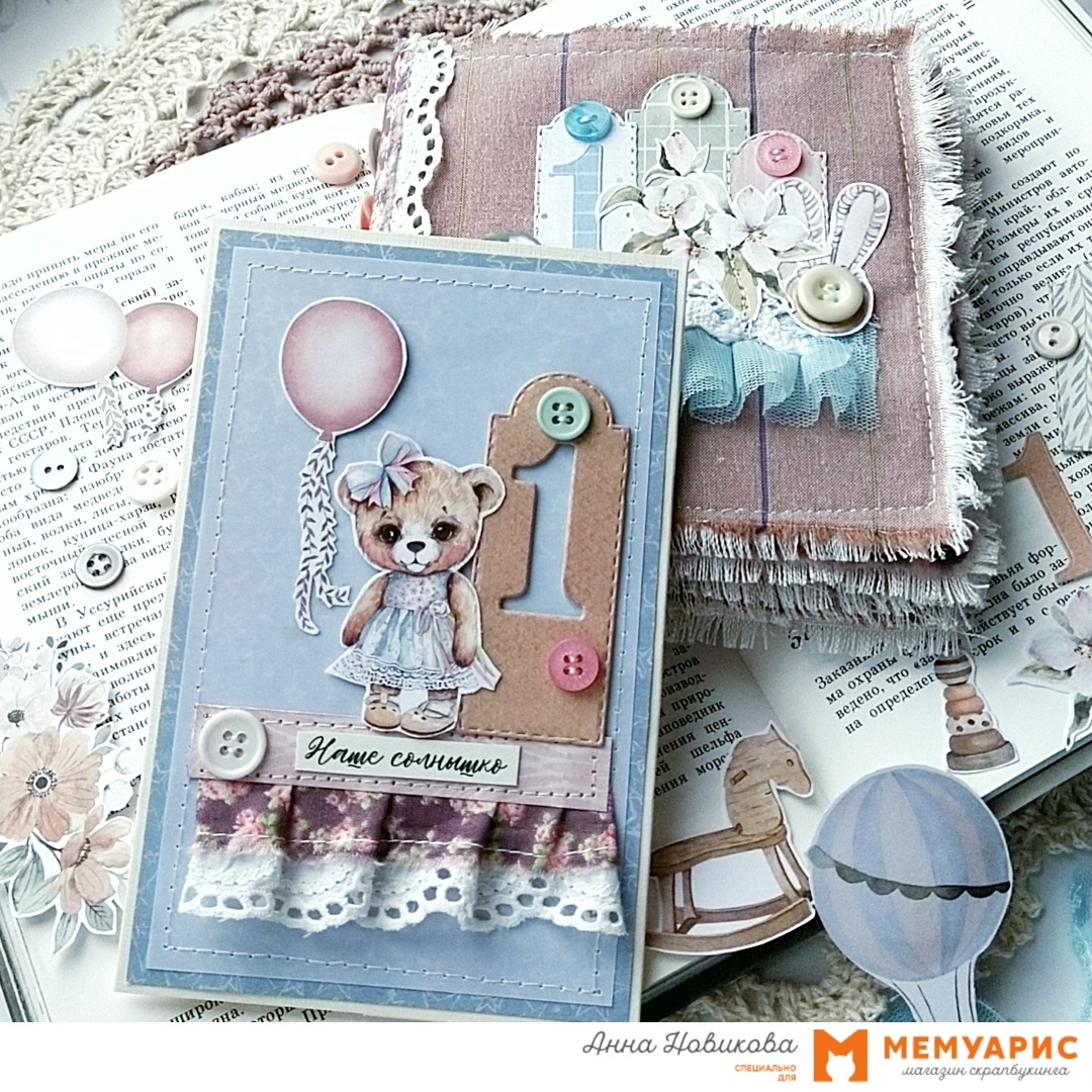 Всем привет! С вами Анна Новикова. Продолжается наше тематическое задание «Обратный отсчёт» и вы, наверное, уже видели комплект из открытки и мини-альбома, которые я подготовила для этого задания. Моей младшей внучке Василисе на днях исполнился годик и всё это сделано для неё.