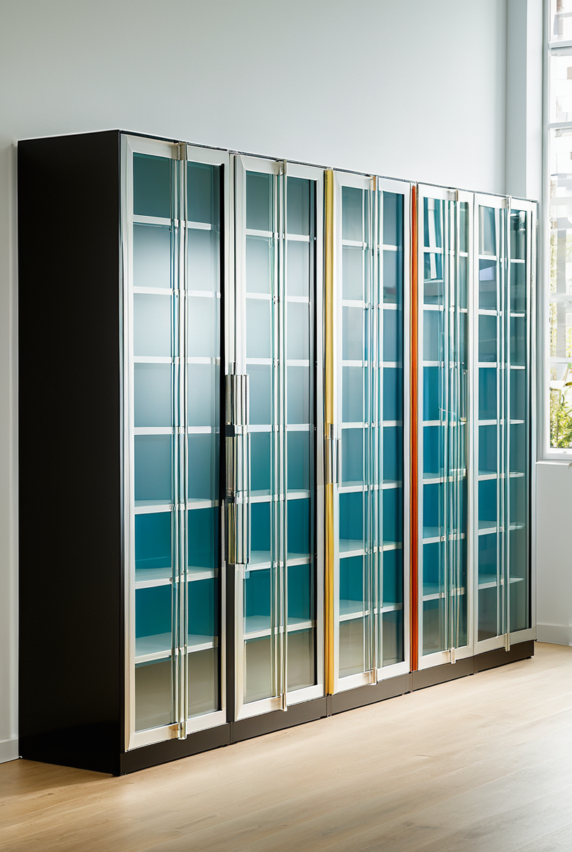 Конструкция и дизайн шкафа определяют его удобство и интеграцию в интерьер офиса. Классический закрытый шкаф оснащен распашными дверцами, которые дают полный обзор содержимого, но требуют места для открывания. В условиях ограниченного пространства лучшим решением станет шкаф-купе, чьи раздвижные дверцы экономят площадь.