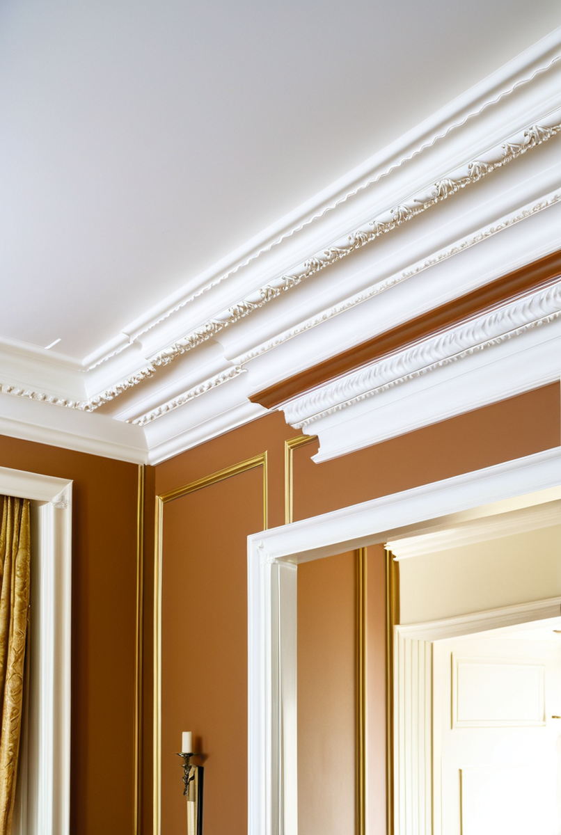 Финишная отделка лепнины: шпаклевка и заделка швов, грунтовка и покраска (акриловая краска или водоэмульсионная) для идеальных стыков