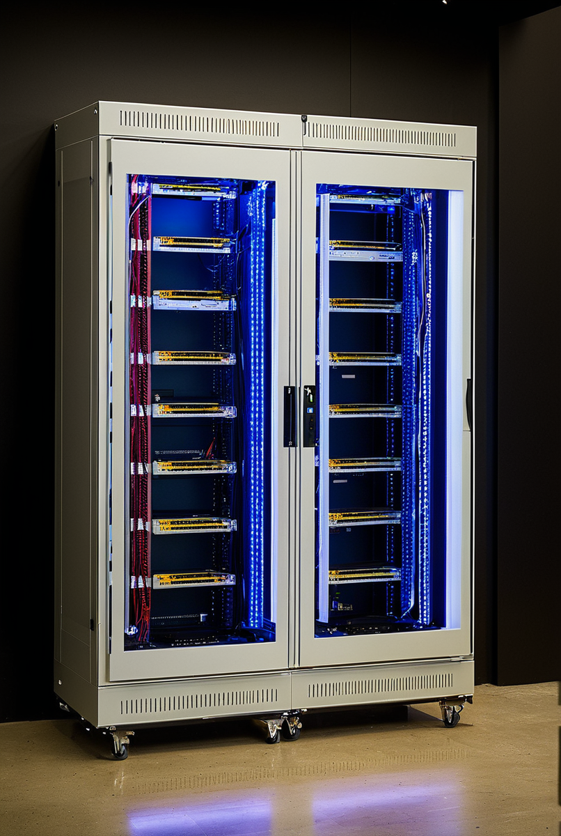 Тип двери напрямую влияет на охлаждение. Если у вас много активного оборудования, выделяющего тепло, то перфорированная дверь — лучший выбор. Стеклянная дверь позволяет визуально контролировать индикаторы, а глухая металлическая дверь (часто антивандальная) обеспечивает максимальную защиту от пыли и доступа. Для активного отвода тепла рекомендуется установить блок вентиляторов, опционально с термостатом. Сразу стоит приобрести: блок розеток, кабельный организатор для укладки проводов через кабельные вводы, и полка для шкафа для устройств без стандартного крепления. Это повлияет на итоговую цену.