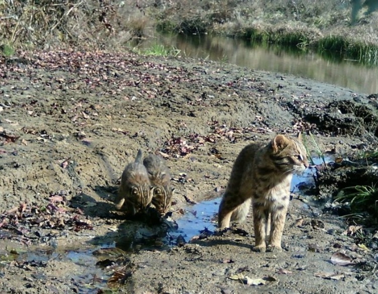Сентябрьский приморский лес, уже тронутый первыми холодами. Солнце едва пробивается сквозь кроны деревьев, а где-то среди густого кустарника крадётся изящная пятнистая тень. Это не домашняя кошка забрела в чащу это дальневосточный лесной кот, северный подвид бенгальской кошки , один из самых таинственных обитателей российского Дальнего Востока. И вот недавно исследователям национального парка «Земля леопарда» улыбнулась настоящая удача! Фотоловушка, установленная возле небольшого водопоя, зафиксировала редчайший момент, самка амурского лесного кота вышла к воде не одна. За ней, осторожно ступая крошечными лапками, следовали два пушистых котёнка. Малышам около полутора месяцев и в этом возрасте они начинают выходить из логова и обследовать прилегающую территорию . Крошечные хищники, не больше ладони взрослого человека, настороженно оглядывались по сторонам. Мать на мгновение остановилась, словно проверяя безопасность маршрута. Котята, подражая ей, тоже замерли настоящий урок вы