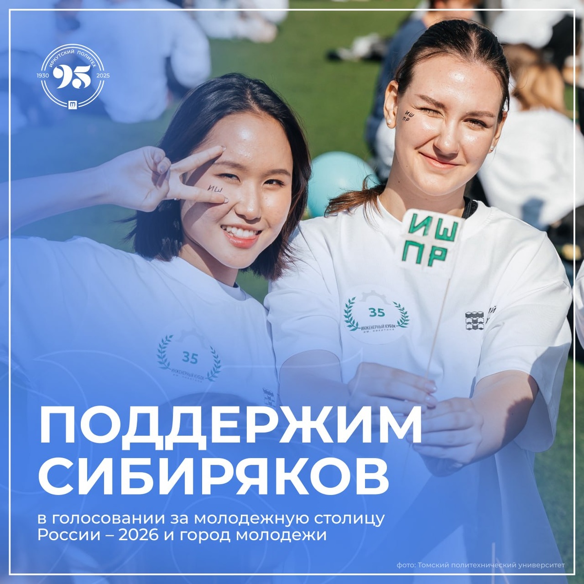 Поддержим сибиряков ❤️ С 1 по 19 декабря проходит всероссийское голосование, которое определит города — лидеры молодежного развития в 2026 году. Для наших регионов сейчас особенно важна поддержка. Мы приглашаем каждого проголосовать: ➡️ за Томск в номинации «Молодежная столица России – 2026»; ➡️ за Шерегеш в специальной номинации «Город молодежи». Поддержка жителей страны играет ключевую роль. Голосование проходит на Госуслугах. Выбор можно сделать один раз, при этом город своей регистрации выбирать нельзя. Давайте вместе поддержим наших земляков и поможем им стать символами молодежной энергии России. Каждый голос имеет значение! Фото: Томский политехнический университет 👻 МАХ | 💙 ВК | 📝 ДЗЕН