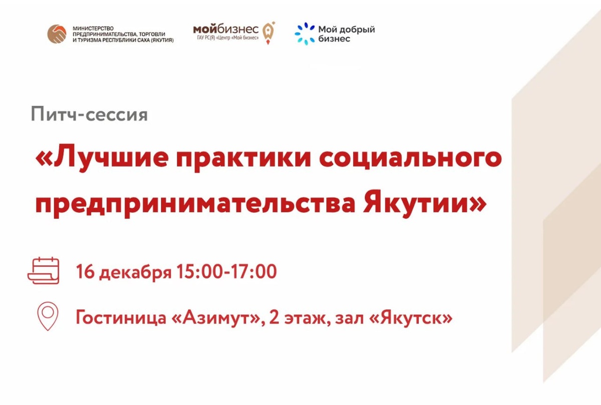 🚀Центр «Мой Бизнес» приглашает принять участие в питч-сессии «Лучшие практики социального предпринимательства Якутии