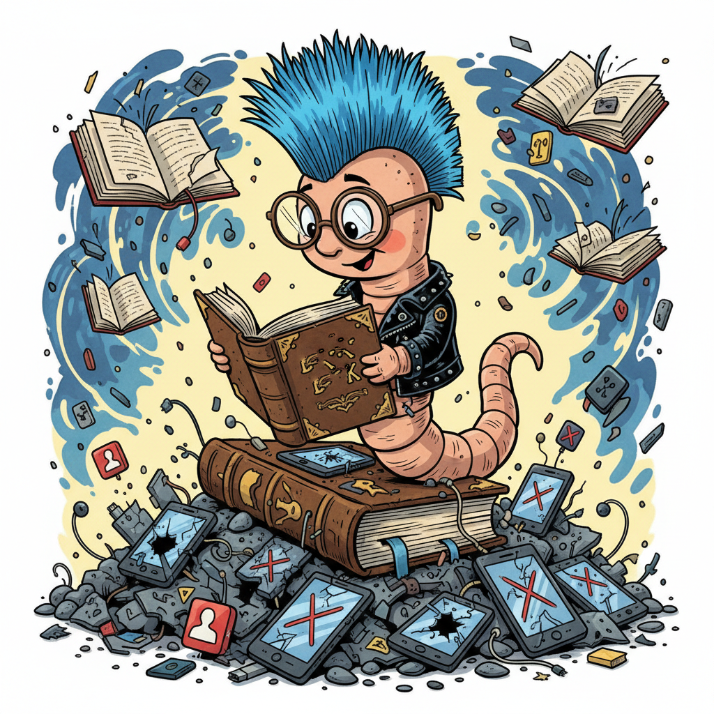 Никто не хочет быть червяком. Если вас так называют в школе, это повод для драки за гаражами. Если на работе — повод обновить резюме. Но добавьте к этому скользкому слову прилагательное «книжный», и внезапно мы получаем не беспозвоночное, а интеллектуальную элиту. Или, как минимум, человека, который знает, что «экзистенциальный кризис» — это не когда в «Пятёрочке» закончилась гречка по акции. Червивая аристократия Кто такие «книжные черви»? В классическом понимании — это ребята в очках с диоптриями толщиной с дно пивной бутылки, которые прячутся от солнечного света и социальных взаимодействий. Но это всё стереотипы из американских комедий восьмидесятых. Сегодняшний «книжный червь» может выглядеть как фитнес-тренер, работать топ-менеджером и при этом тайно поглощать Пруста в перерывах между совещаниями по KPI. Суть явления не в очках и не в сутулости. Суть в добровольном эскапизме. «Книжный червь» — это существо, которое поняло одну простую вещь: реальность часто переоценена. В реально