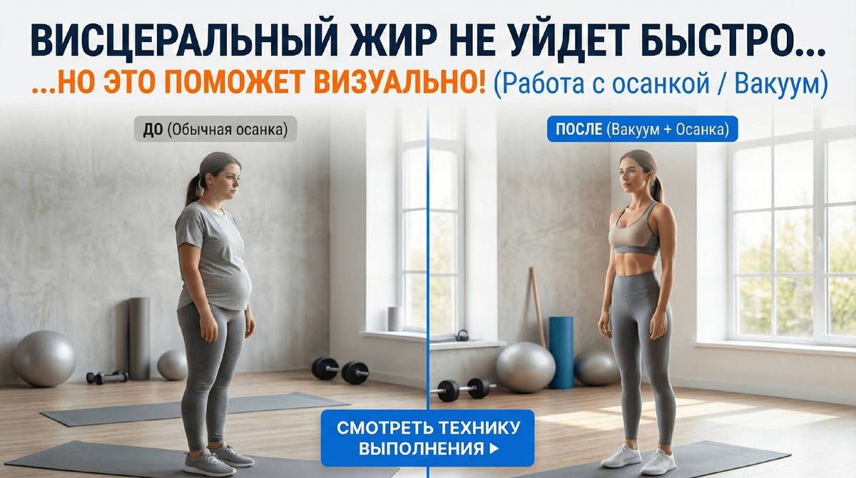 Будем честны: висцеральный жир (тот, что внутри) — упрямый. Чтобы сжечь его реально, нужны месяцы правильного питания и режима. Но что делать, если выглядеть стройнее хочется уже сегодня? Или если вы худеете, весы показывают минус, а живот все равно вываливается вперед, как только вы расслабляетесь? Секрет в том, что 50% объема вашего живота — это не жир. Это слабый внутренний корсет и неправильный наклон таза. Ваши внутренние органы просто давят на брюшную стенку, и она растягивается. Сегодня мы научимся «подбирать» живот механически. Это не сожжет жир, но мгновенно сделает вашу талию уже, а силуэт — спортивнее. 1. Проблема «Вываленного ведра» (Гиперлордоз) Подойдите к зеркалу боком. Расслабьтесь.