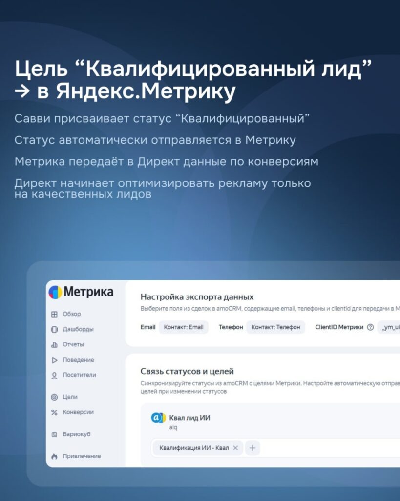 Решение есть: фиксировать и передавать в Метрику только цель «Квалифицированный лид», которую выставляет ИИ-агент Savvy.