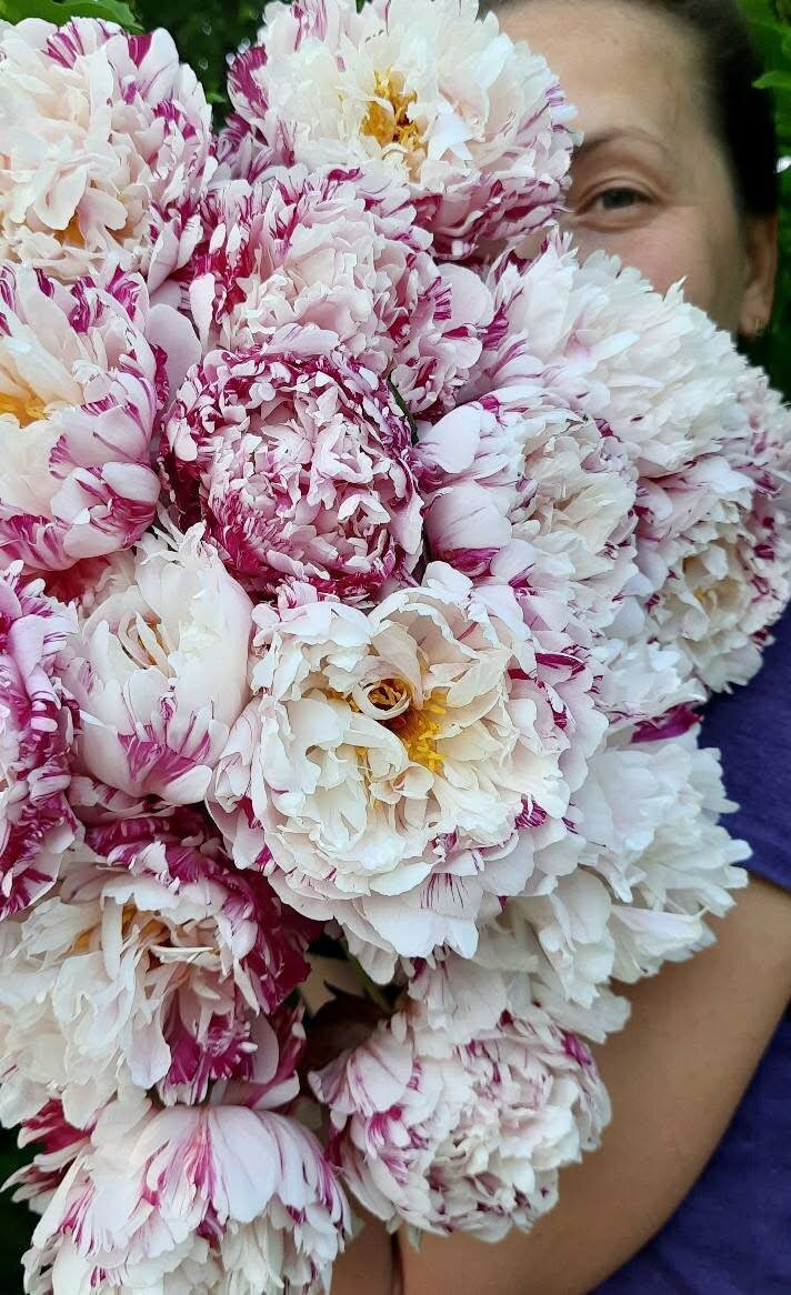 Пион Independence Day. Уникальный двухцветный сорт пиона , средне позднего срока цветения , с насыщенным вишневым тоном внешних лепестков и белыми внутренними лепестками, которые образуют эффектный контраст. Этот пион выведен из гибрида «Marta W” и неустановленной Paeonia lactiflora , зацвел впервые 2002 году и сразу привлек внимание благодаря изысканной структуре и редкой окраске.