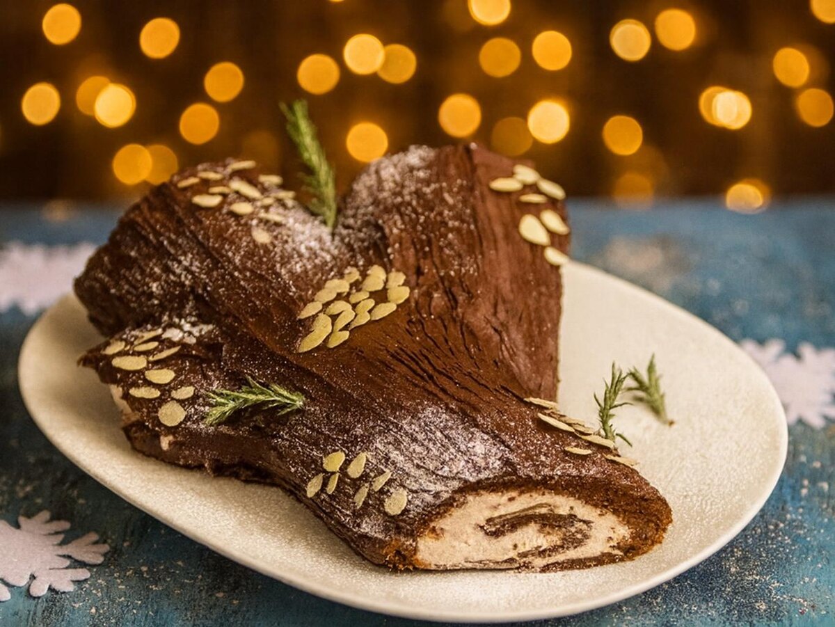 Порадуйте гостей изысканным и красивым десертом – «Рождественским полено». Это классическое французское лакомство, которое символизирует полено, сжигаемое в камине в сочельник для удачи. Для шоколадного бисквита: - 100 грамм сахара - 2 крупных яйца + 3 больших желтка + 2 больших белка (отдельно) - 30 г муки - 15 г кукурузного крахмала - 15 г какао-порошка - 1 ч. л. экстракта ванили - 1/8 ч. л. соли - Сахарная пудра (для обсыпки) Для малинового крема с маскарпоне: - 160 г маскарпоне - 160 г сливок (33% жирности) - 2-3 ст. л. сахара - 150 г свежей или замороженной малины - 2 ст. л. малинового джема - Щепотка соли Для шоколадной глазури («кора»): - 100 г темного шоколада - 90 мл жирных сливок Для украшения и подачи: - Взбитые сливки - Свежая малина - Сахарная пудра («снег») Процесс приготовления. 1. Готовим шоколадный бисквит - Разогрейте духовку до 230°C. Противень застелите пергаментом, слегка смажьте маслом и присыпьте мукой. - В одной миске просейте муку, кукурузный крахмал и какао, д