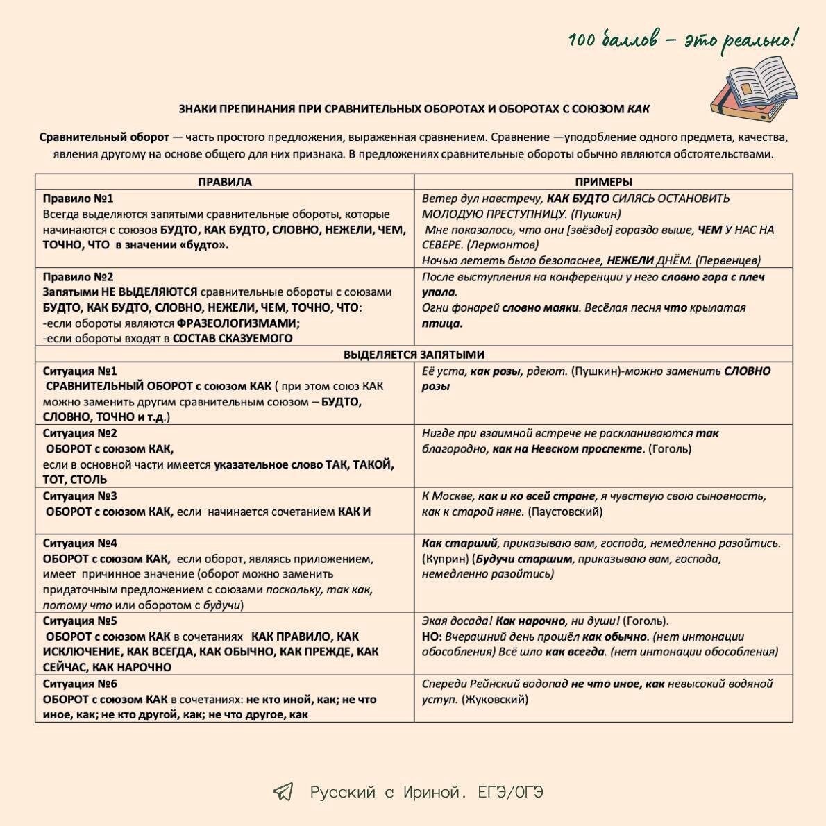 1) Её уста, как розы, рдеют 🌹 2) Как солнышко она ☀️ Почему в 1 предложении запятая при сравнительном обороте есть, а во втором - нет? Давайте разбираться. Я подготовила для вас полную табличку. С ней вы точно не ошибетесь!