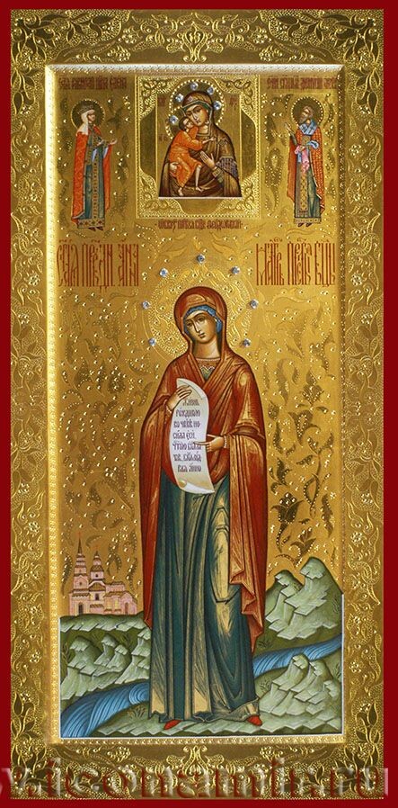 - На иконах Анна изображается с Девой Марией, младенцем Иисусом или супругом Иоакимом.
