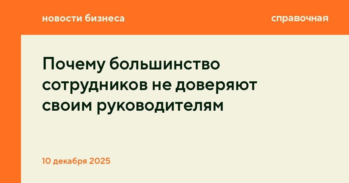 📊 52% сотрудников не доверяют своим руководителям, показал опрос Gartner. Это влияет на вовлечённость работников и результаты компании. Учёные выяснили, что сотрудники с меньшей вероятностью будут доверять руководителям, если они: 🔘 Скрывают информацию. Сотрудники на 20% меньше доверяют руководителям, если считают, что те скрывают важную информацию или не рассказывают всей истории. 🔘 Всегда ищут виноватых. Сотрудники на 30% меньше доверяют руководителям, если те перекладывают вину за свои решения на других или на факторы, которые они не могут контролировать. 🔘 Резко отменяют решения. Сотрудники на 20% меньше доверяют руководителям, если те меняют курс или отказываются от своих решений. 🪅 Авторы исследования выделили четыре действия для укрепления доверия сотрудников. Подробнее о них рассказываем здесь. 🔥 @spravochnaya🔥