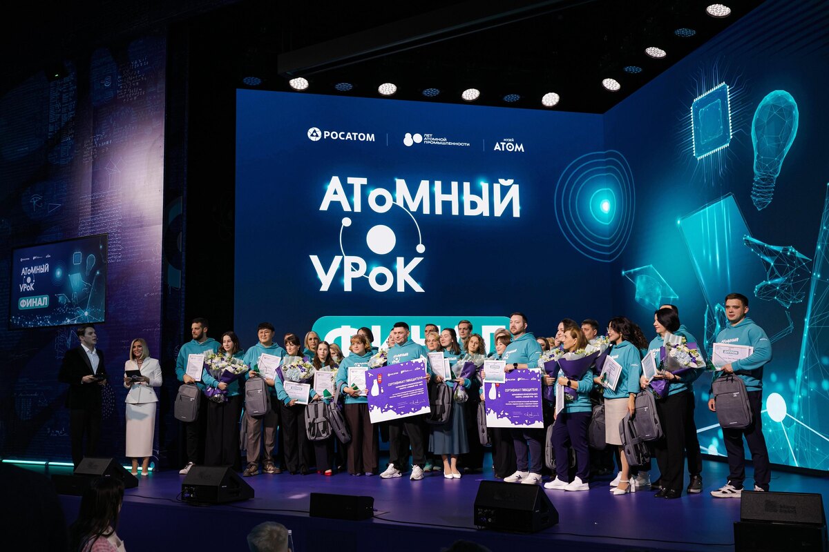 В музее «АТОМ» на московском ВДНХ 7 декабря состоялся финал всероссийского просветительского конкурса «Атомный урок». 30 лучших учителей из 22 регионов России представили свои авторские педагогические разработки. Впервые в истории проекта первое место разделили два педагога, набрав одинаковое количество баллов: победителями стали учитель физики лицея № 24 Волгодонска Андрей Скляров и замдиректора, учитель истории и обществознания средней общеобразовательной школы № 11 Стерлитамака Артём Инчин. В августе победители отправятся к Северному полюсу на атомном ледоколе в рамках арктической экспедиции «Росатома» «Ледокол знаний». Среди лауреатов конкурса в номинации «Квантовая мультивселенная» – Ксения Левинсон из Петербурга. «Атомный урок» – всероссийский просветительский проект, реализуемый при поддержке Госкорпорации «Росатом» и Министерства просвещения РФ, охватывает все регионы России и включает международные мероприятия. В 2025 году «Атомный урок» проходит уже в шестой раз. За время про